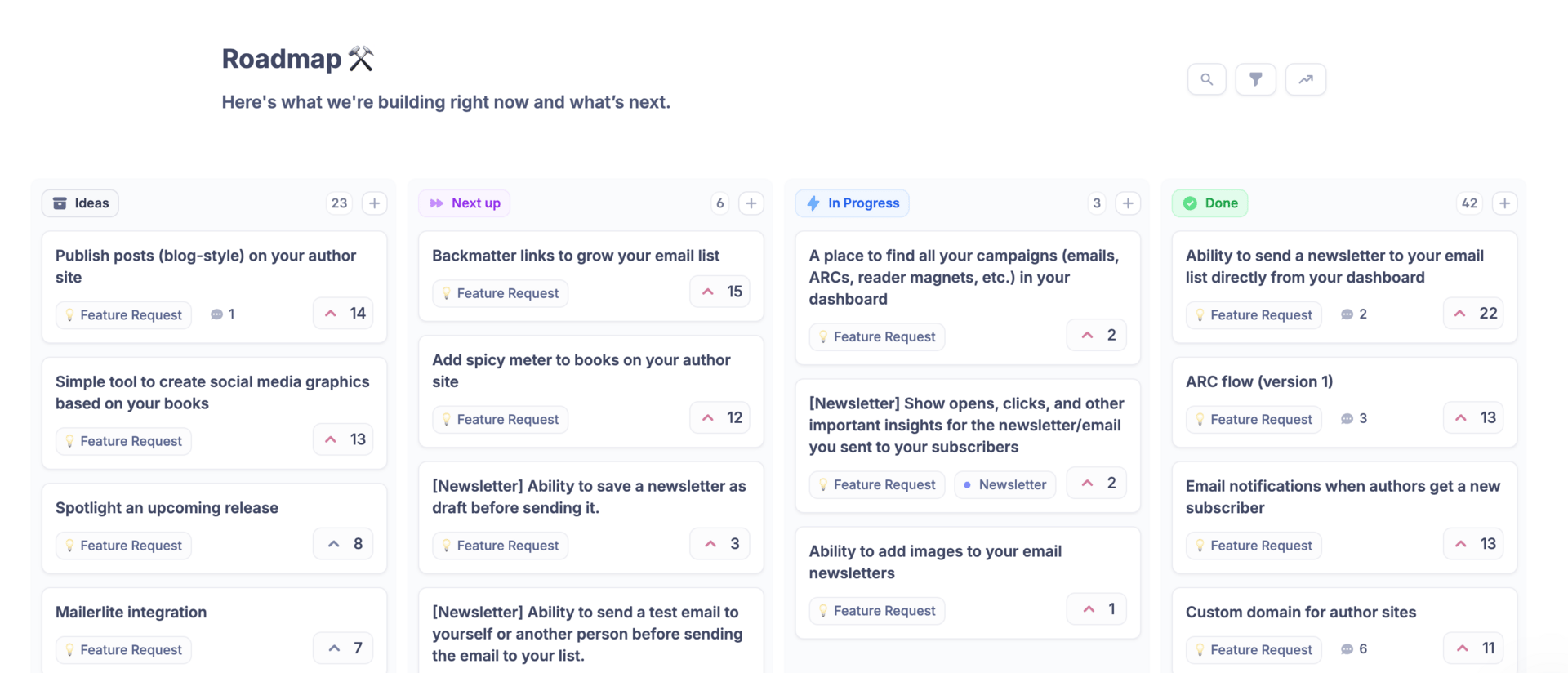 The most-voted features get built first. You're literally shaping the first email tool built for fiction authors.