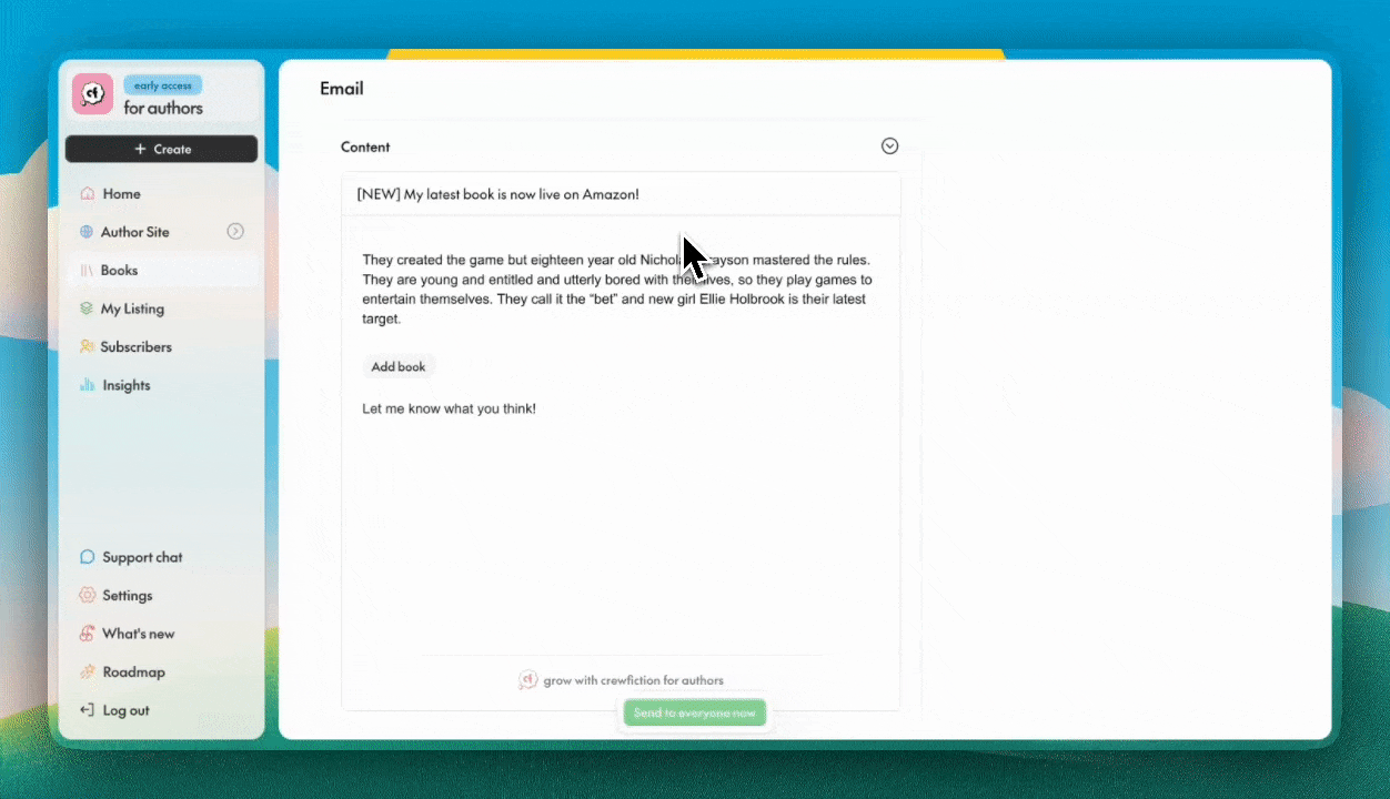 The first email editor built for authors:
